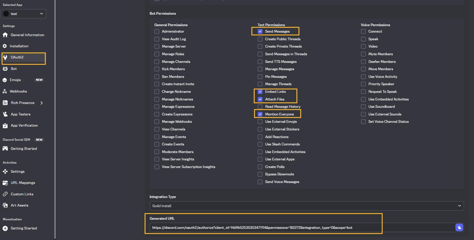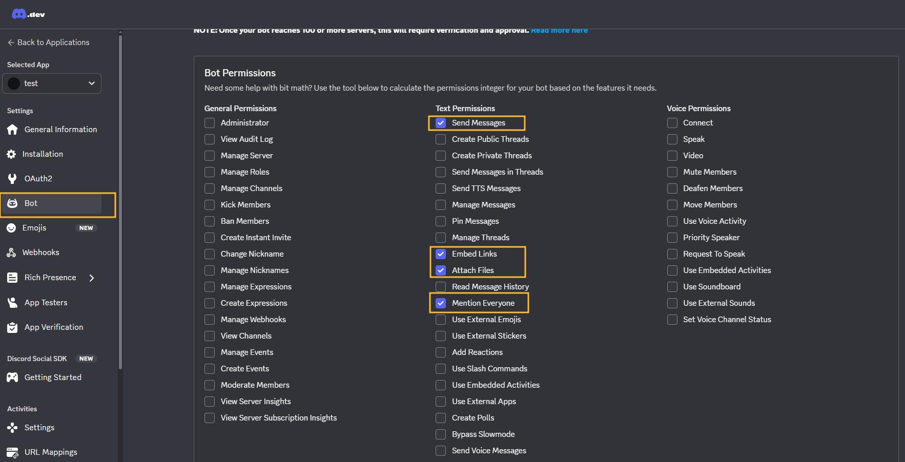 - Bot Permissions 勾選: